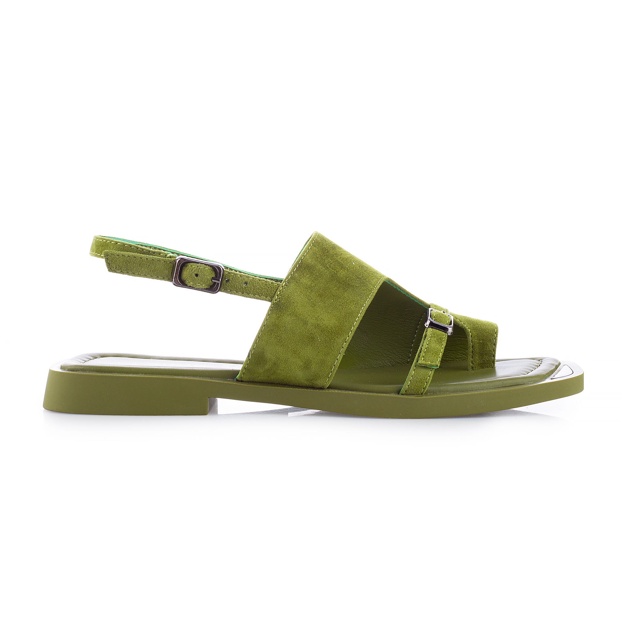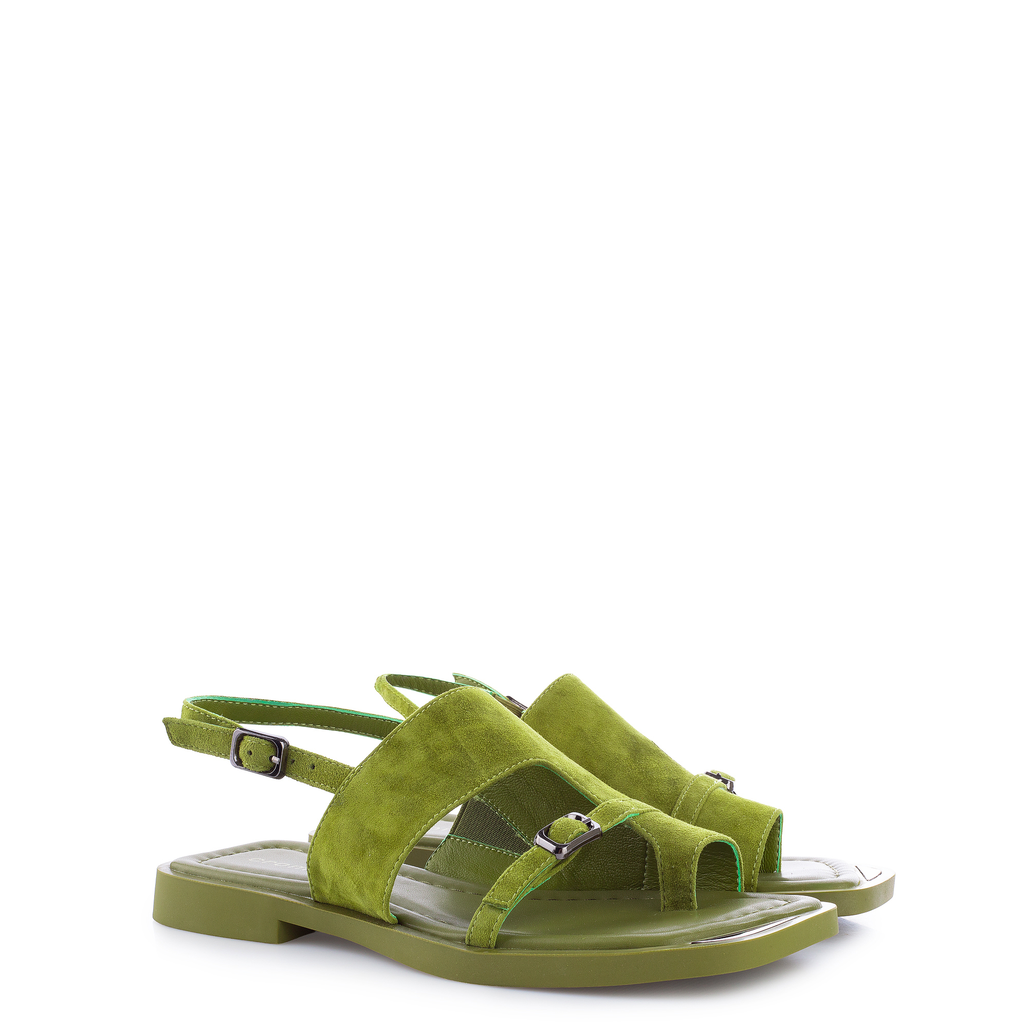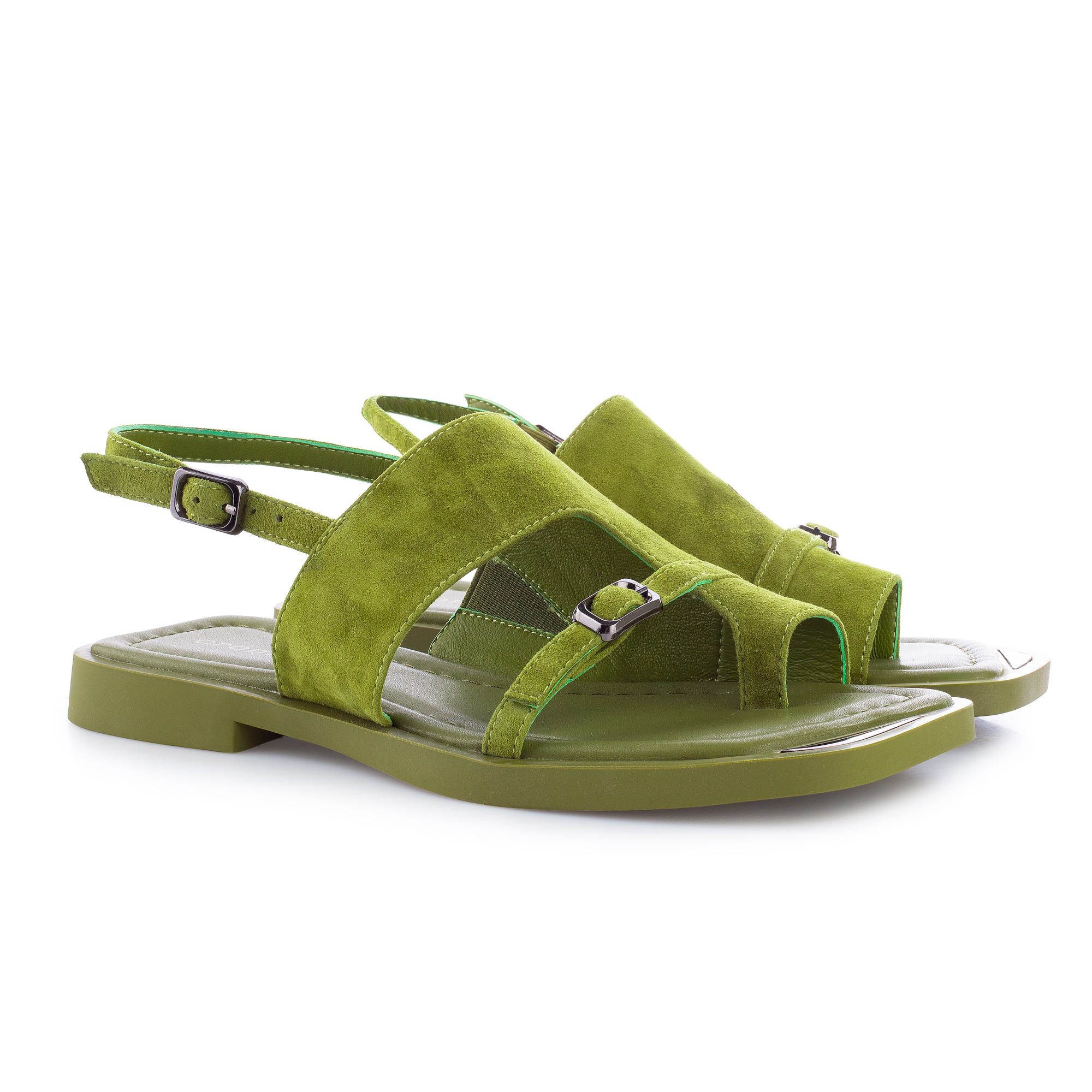 • Идеальное сочетание благородной замши и сочного цвета. Темные пряжки и геометрическая вставка в носочной части – удачное стилистическое решение. Эти босоножки придадут акцент в любой летний образ. Стильная и удобная модель на лето. Благодаря низкому ходу и мягкой стельке они станут любимой парой для повседневной носки.