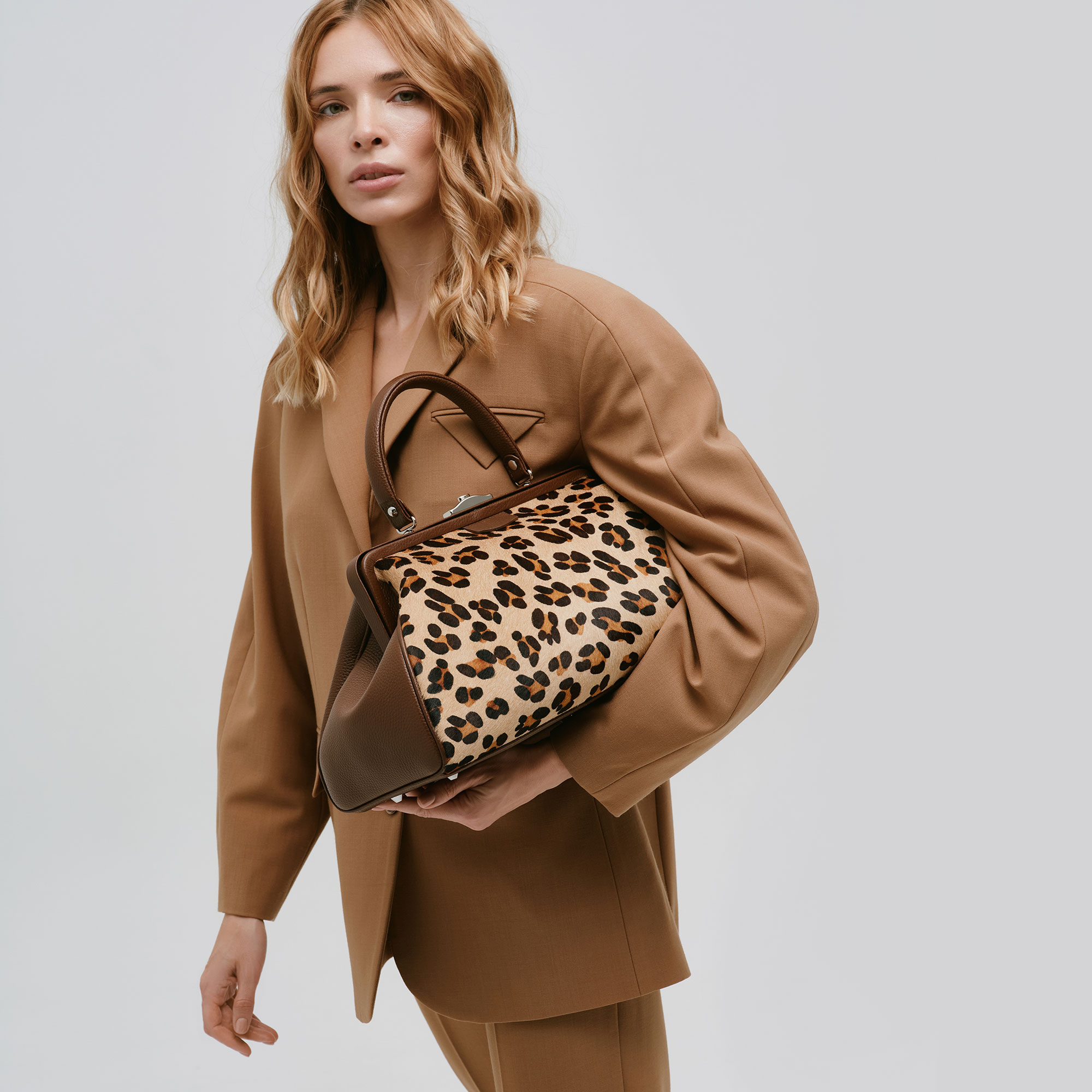 • Роскошь в деталях: сумки из меха пони (Cavallino) покоряют с первого прикосновения мягкостью короткого ворса и выразительной анималистической текстурой. Модель выполнена в трендовой саквояжной форме со сложной архитектурной конструкцией, подчёркивая уверенный стиль и внимание к дизайнерским нюансам.
